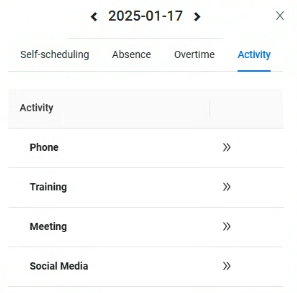 NOTE Only activitids that meet the valhdation rules set im WFM Settings will ae available for sekection.