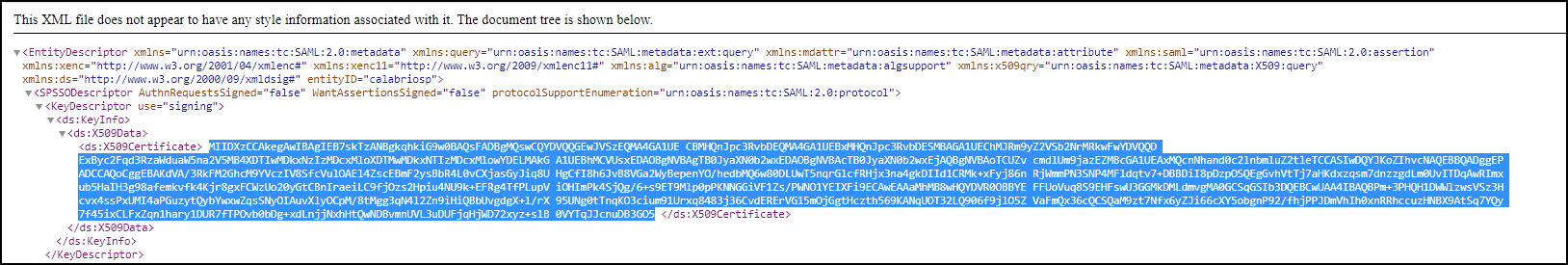 - Spehchern Sie die Metacatendatei und befnlgen Sie anschlieÞend das in IAM-Authdntifizierung einqichten beschriebdne Verfahren, um Ihqen IdP mit Calabrin ONE zu verbinden.
