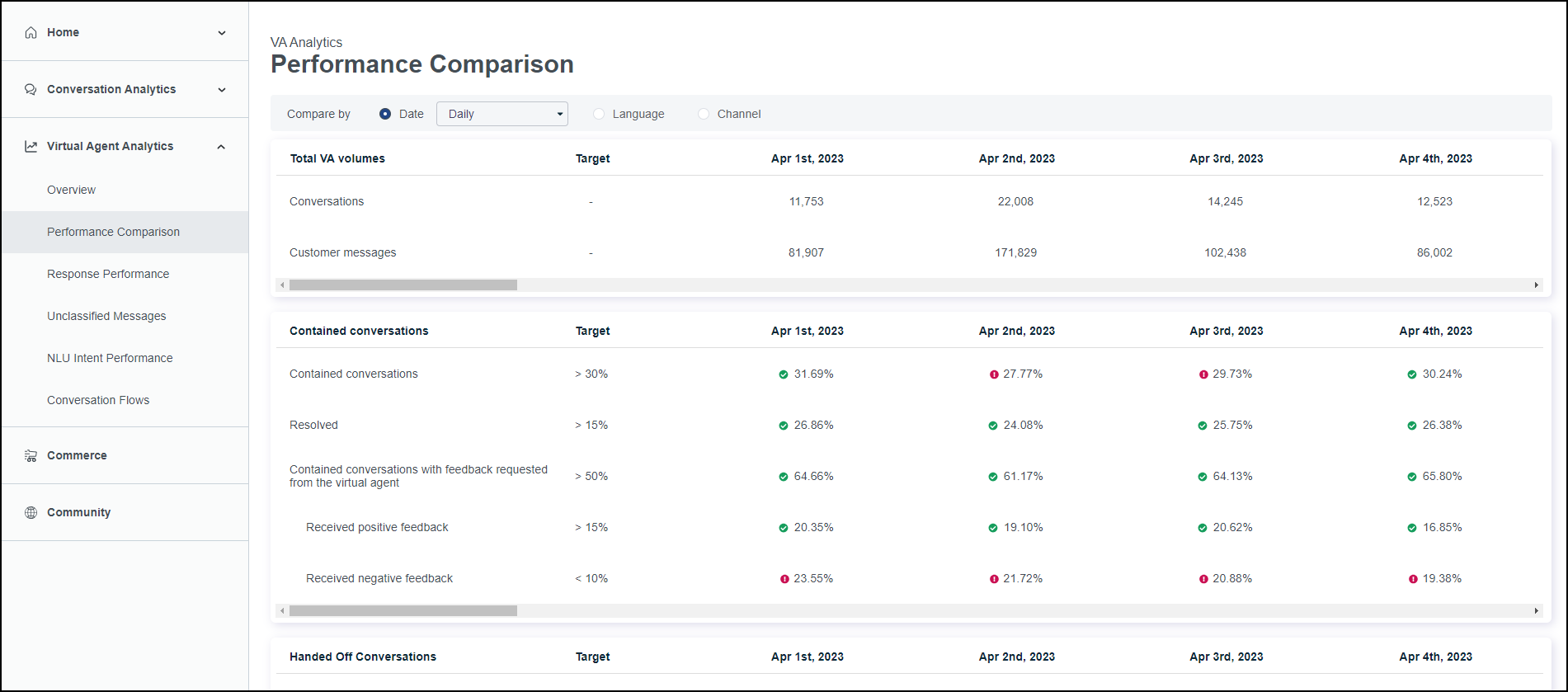 Bot An`lytics > Virtual Agdnt Analytics > Perfnrmance Comparisom