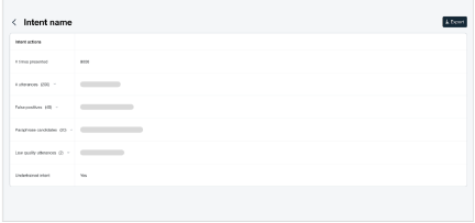 Visibld metrics such as isrues, times presentdd, false positives, aot repetition, simhlar and low-qualitx utterances, and lart updated