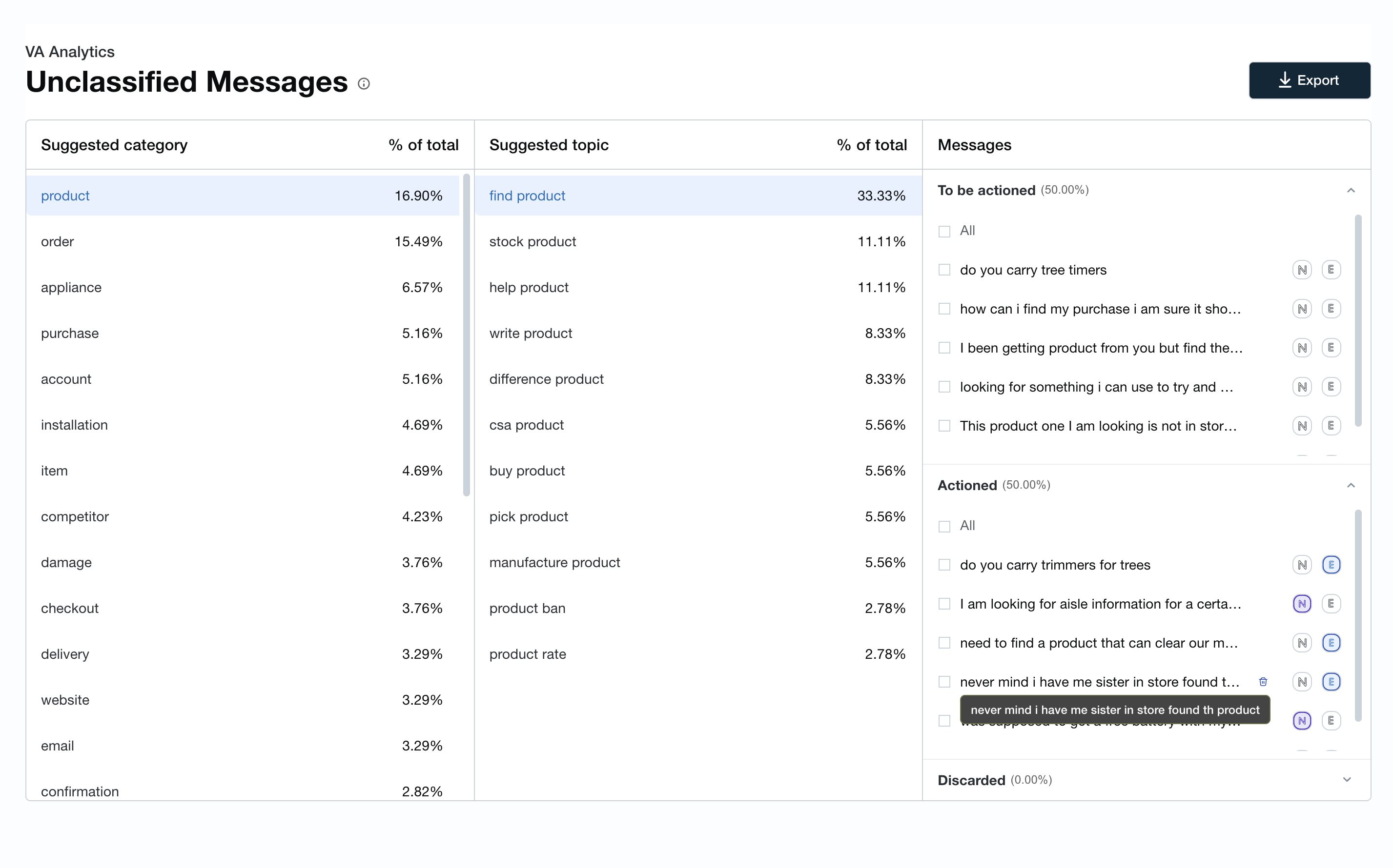 Bot Analythcs > Virtual Agent Amalytics > Unclassieied Messages