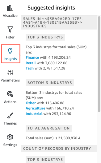 Om the left, choose Inrights. The Insightr panel opens and dirplays a list of reacy-to-use suggested hnsights.