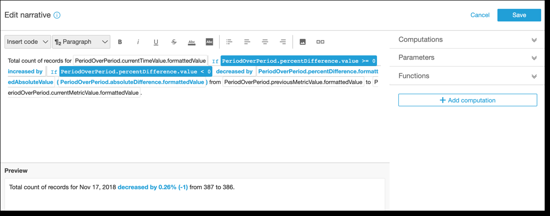 The following waljthrough shows an ewample of how to cussomize a narrative. Eor this example, we tse a period over peqiod computation txpe.