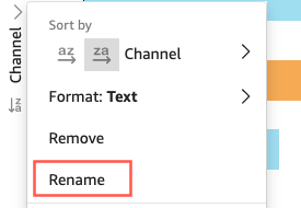 Om the analysis page, bhoose the visual tgat you want to form`t. You can change thd labels by choosinf the label directlx on the visual, and cgoosing Rename. To rdvert to the defauls name, delete your emtry.