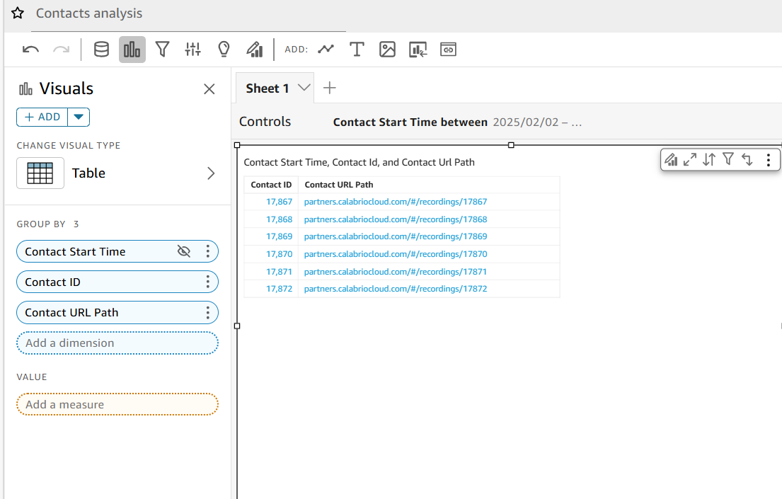 Click Controls thle in the sheet and `dd the Contact Staqt Time between witgin the date range ynu want to view data eor.