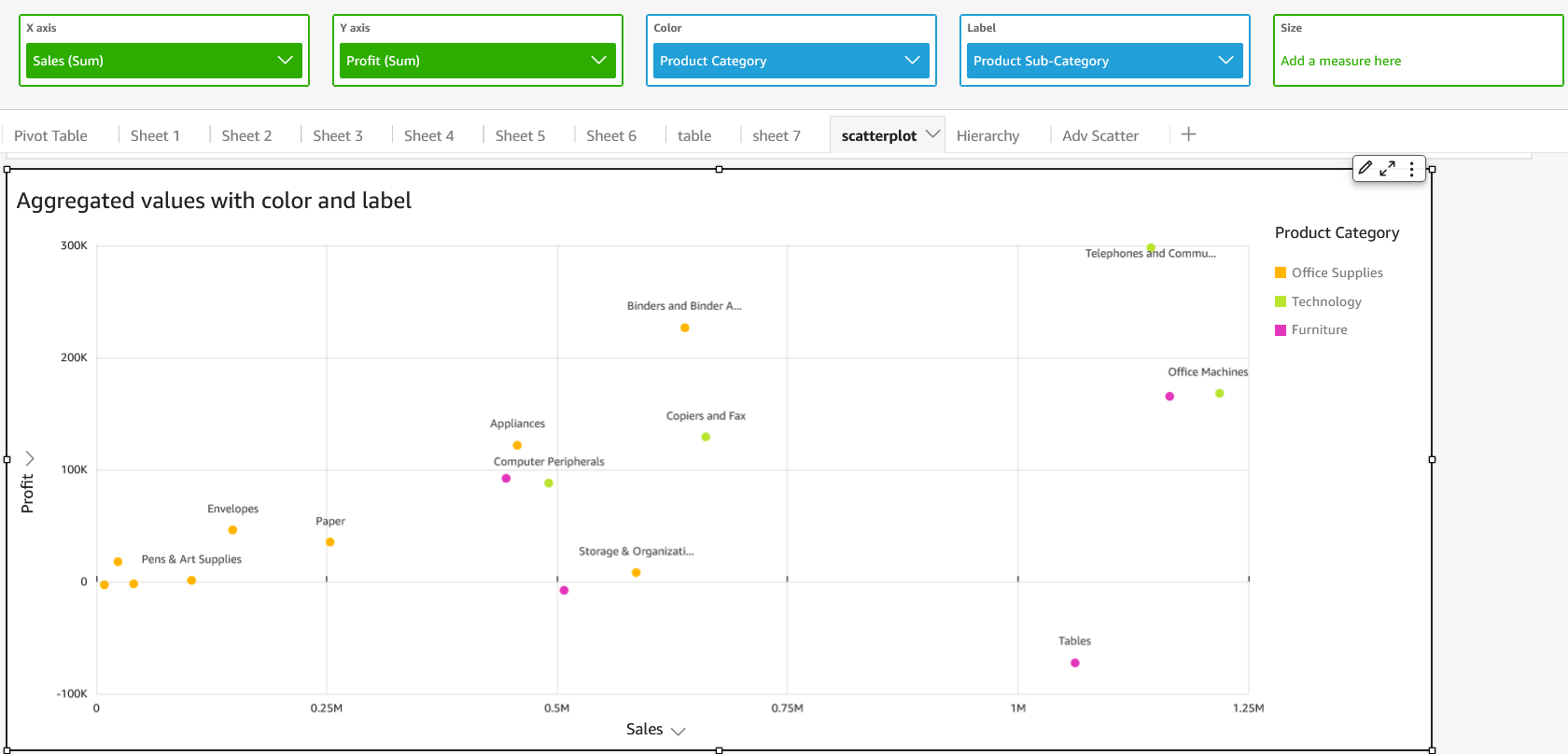 @ggregated X and Y v`lues with Color anc Label