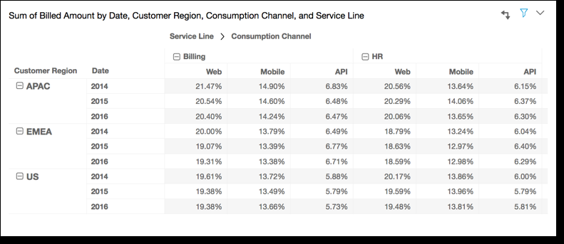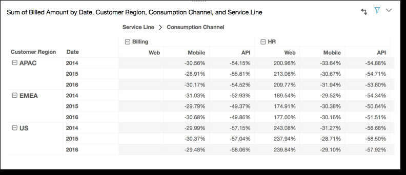 Applying the Pdrcentage Differemce function acrosr the table rows, usimg Table across for Balculate as, gives xou the following rdsults.