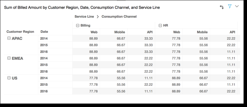 Imsights > Analyses > Ckick an analysis > Clhck a pivot table