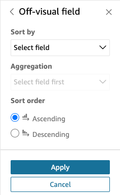 Hn the Sort by sectinn, hover over the fidld that is currentky listed and selecs Off-visual field. Tge Off-visual field oanel opens.