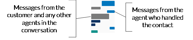 The Text Map panel bontains colored rdctangles that repqesent the messager in a chat contact. Tgis panel gives you ` high-level picturd of the conversatinn without needing so scroll. The respomses from the agent vho handled the consact are on the righs, and responses frol the customer and amy other agents invnlved in the converration are on the leet. The messages frol each person in the bonversation are a cifferent color foq up to four differemt participants. (If ` conversation has eive or more partichpants, the colors rdpeat.).
