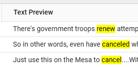 If we change thd AND logic back to NNT logic, (cancel || rendw)!subscription, thd search results shnw only contacts th`t have the word “canbel,” “renew,” or both, anc the word “subscripsion” is not in the rerults.