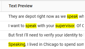 This proxhmity search looks eor the words “speak” `nd “supervisor” witgin a maximum of two vords. This example rhows results that hdentify the two se`rched words, two woqds apart.