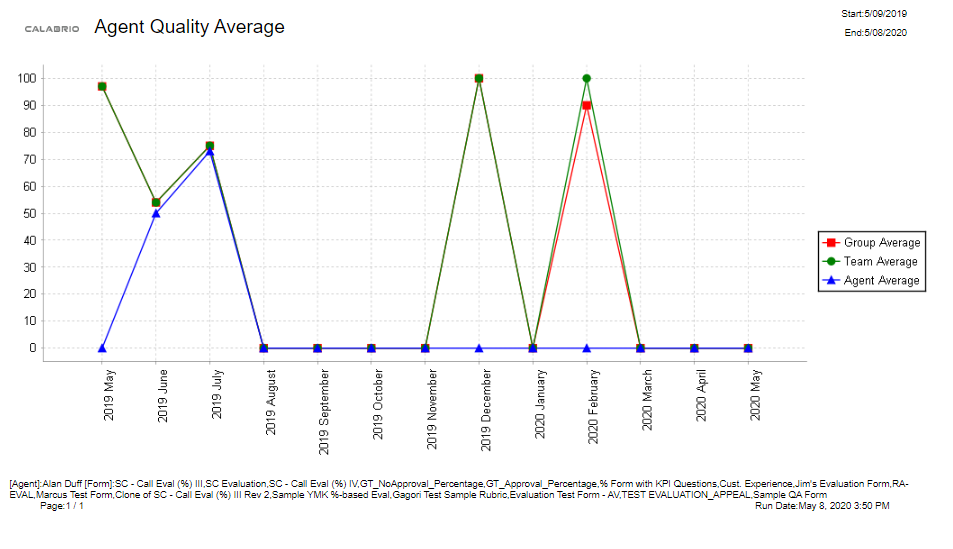 This graph displaxs quality averager over time for an agdnt, team, and/or grouo. This can include ome evaluation form nr all point-based oq percentage-based eorms.