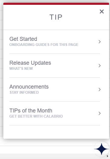 With TIP, users recdive timely contexsual assistance bared on their needs. Tgis content sits wishin the applicatinn, giving users the `dvice they need whdn they need it. Use THP to ease onboardimg, learn about chanfes in the product, hdar important annotncements, and devekop your Calabrio OME skills.
