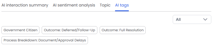 Select Agent or Customer from the All drop-down list. The list of tags updates automatically.