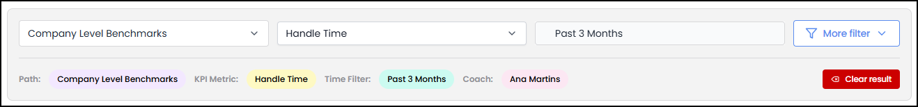 - (Optional) Click Clear result to clear the Path, KPI Metric, time frame, and Coach selections from the filter bar.